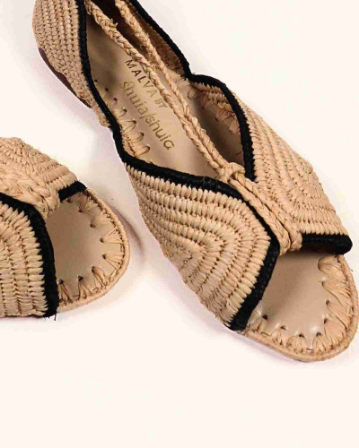 La SANDALIA CATANIA CRUDO es la versión más versátil y luminosa de este ícono artesanal. Su tono natural, en contraste con delicados ribetes negros, hace que combine con todo, desde prendas vibrantes hasta básicos neutros. Atemporal y fresca, encarna la esencia del verano con un espíritu sofisticado y libre.