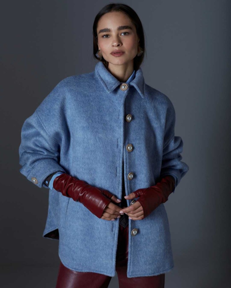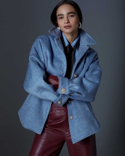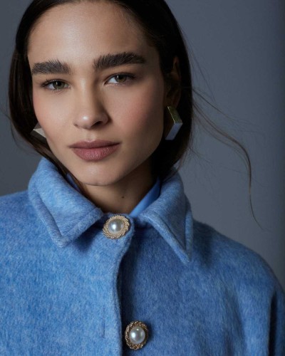 No es solo un abrigo, es actitud. El abrigo Mateo reinterpreta la clásica sastrería con un giro inesperado: proporción relajada, cuello estructurado y botones que parecen joyas. Su mezcla de lana, seda y conejo envuelve con una suavidad casi táctil, mientras el color celeste eleva cualquier look sin esfuerzo. Un must de esta temporada que redefine las reglas.